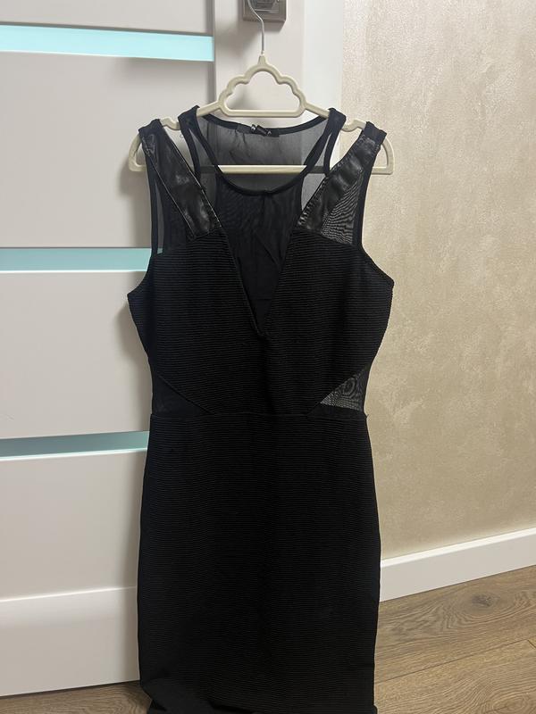 Черное Платье мини tally weijl, размер s, имеет вставки под искусственную кожу и сеточку