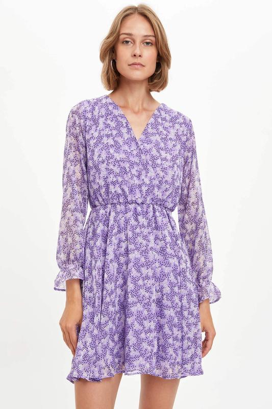 Цветочное платье DeFacto ХС сетчатое с подкладкой Резинка внутри на талии 100% полиэстер