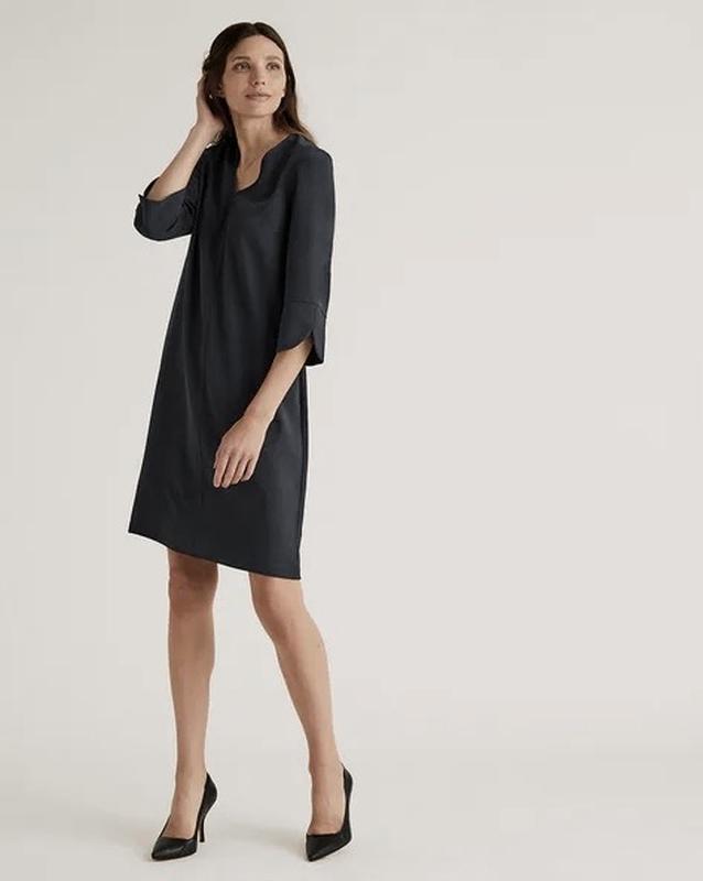 Платье женское насыщенный черный цвет от бренда M&S, размер указаемый 10, или М. Состав ткани: 100% полиэстер. Плечи- 40см, ПОГ- 50см, ПОТ- 48см, ПОБ- 53см, длина рукава ( 3/4)- 46см, длина платья - 96см.
