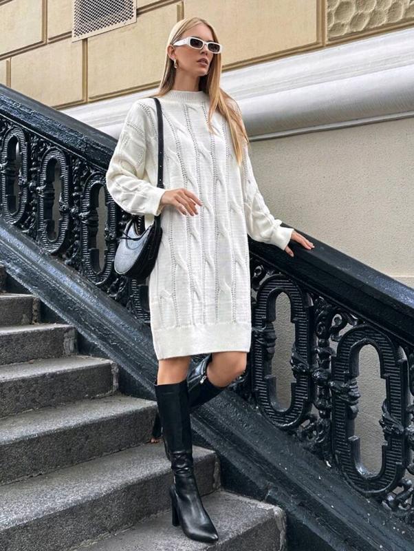 Новый, единственный экземпляр из магазина. Очень красивое и теплое платье. Хорошо тянется. Размер указан One-size, но идет на M-L Пошито в Турции, для бренда Shein Длина 92 см Ширина под подмышками 59 см Ширина по бедрам 52 см Длина рукава от горловины 74 см Склад: 100% акрил