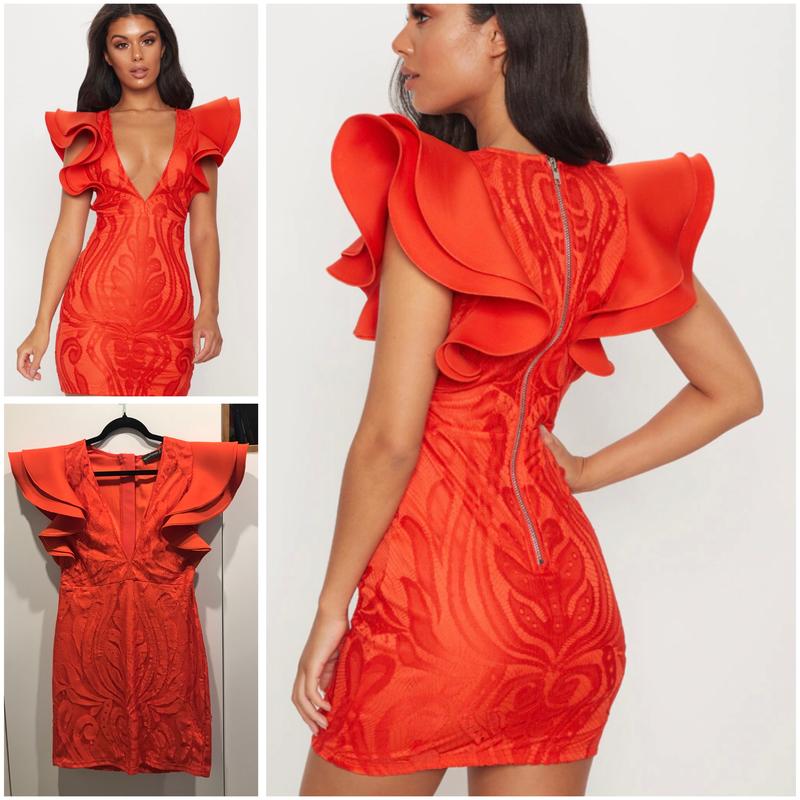 эффектное кружевное мини платье с глубоким декольте и рукавами воланами