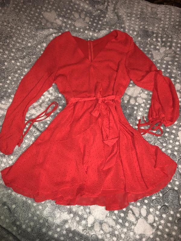 Платье под пояс с интересными рукавами с завязками Имитация платья на запах Одягнена один раз