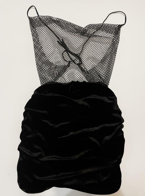 Женское велюровое платье в идеальном состоянии и качестве, красиво сядет по фигуре, перод сеточка со стразами, сзади спинка на бретельках накрест, на попе есть сборка, плотный качественный велюр, покупка за 1900 гр