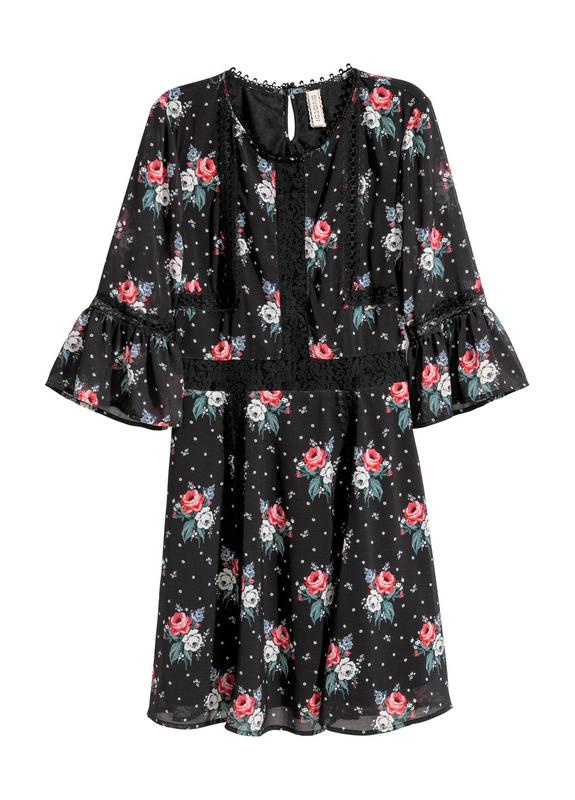 Замеры по изделию: 36 Обхват груди - 74см 38 Обхват груди - 80 см Платье с цветочным принтом со вставками из кружева и вырезом с пуговицей сзади на шее. Короткие рукава с воланом, шов на талии и потайная молния сбоку. Юбка на подкладке. Возможно повреждение бирки 0536475_цветы_05