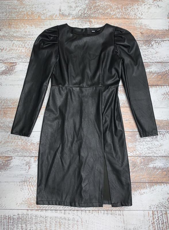 Черное кожаное платье из экокожи