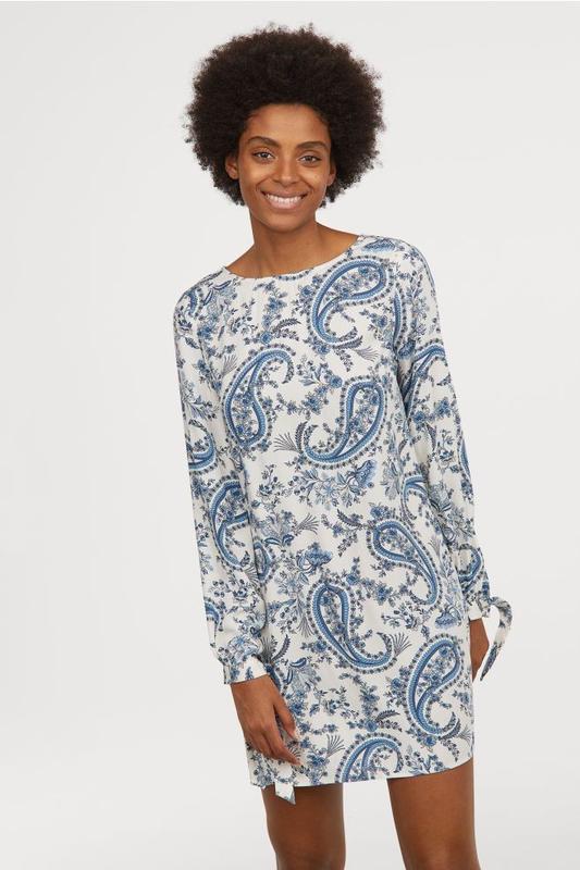Штапельное платье прямая мини с длинным рукавом принт турецкие огурцы/пейсли