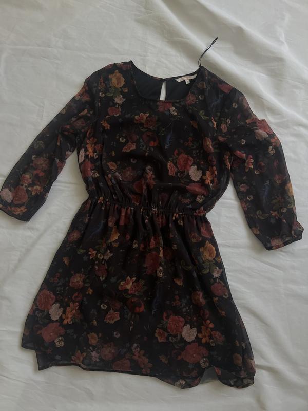 Платье черное в принт, ткань шифон,ткань раскрашенная, есть подкладка, смотрится очень красиво и дорого, длина 87