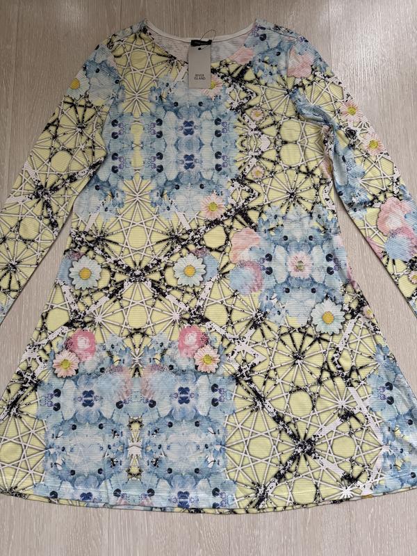 В наличии красивое платье фирмы RIVER ISLAND. Размер указан 8. Состав: 100% полиестер...ткань очень мягенькая и приятная к телу, хорошо тянется. ПОГ-46+ещё тянется, длина платья-83, плечи-37, длина рукава-39, полуобъём в талии-45, в бёдрах-свободно...пошито немного трапецией.