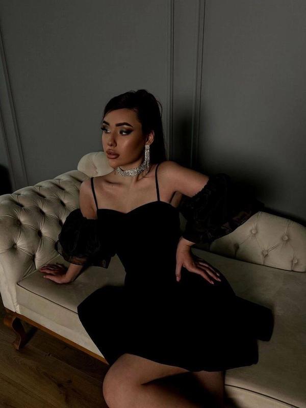 Присутствия 🎉 Сукня Мод. 146 Ткань: креп-дайвиг + органза Размеры: 42-44, 44-46 Цвета: черный Платье от которой просто не возможно отвести взгляд, нежное и в то время очень сексуальное.❤️ Сбоку потайная молния, рукава на резинке пришиты к платью. для удобства на платье есть бретельки, можно носить с ними так и без них. ❤️
