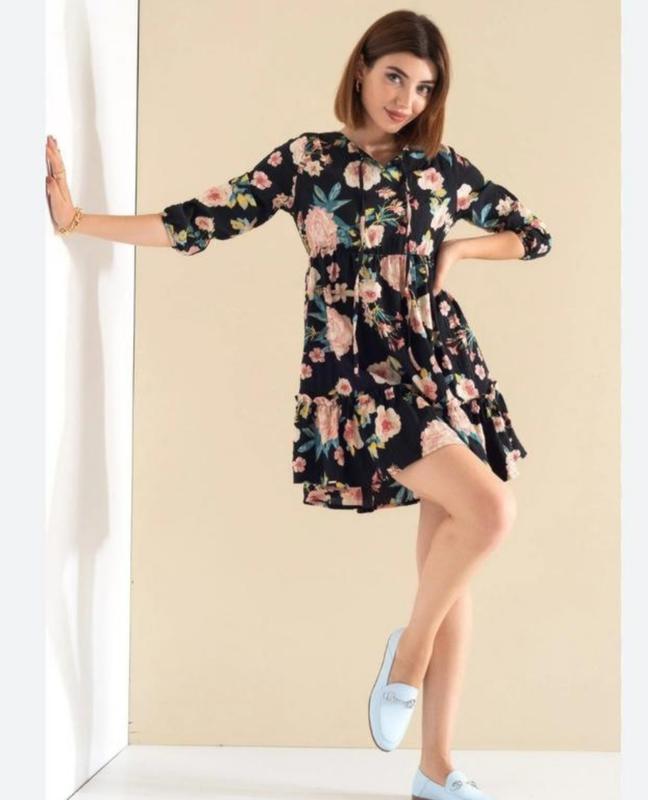 Предлагаю стильное безупречное женское платье оверсайз в цветочный принт от зара. Красивое сочетание цветов на черном фоне. Состояние ноаои вещи. Страна бурлбник Турция Размер М, подойдут также на S. для более точного понимания надеваю замеры: ПО груди 48 см(от шва до шва под рукавами) длина 85 см