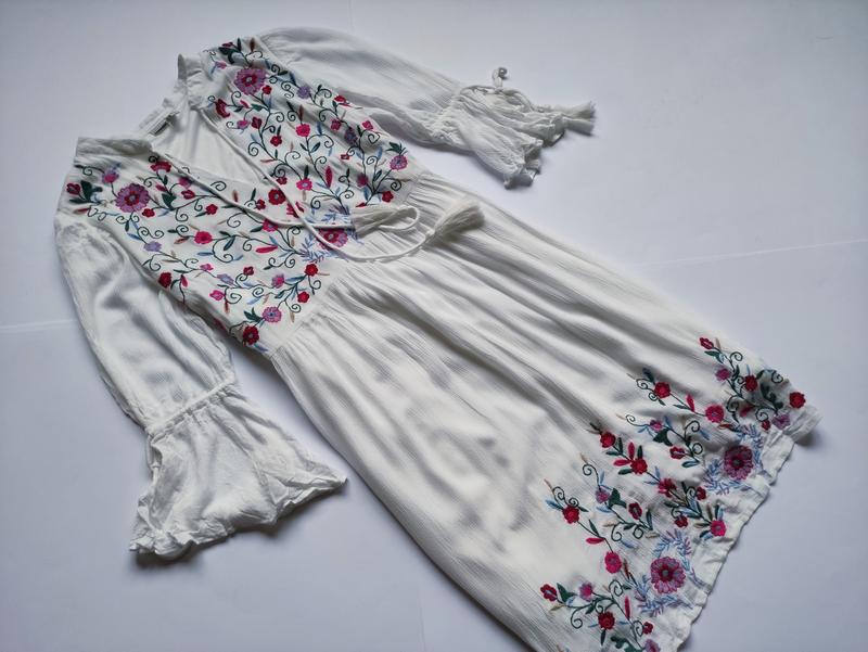 Платье с вышивкой Размер М ПОГ - 48-49, ПОТ - свободно, 46, ПОБ -свободно. Длина 87. 100% вискоза
