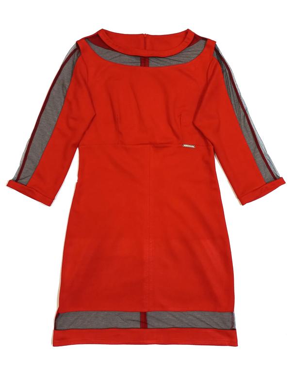 Стильное красное платье со вставками из сетки размер 48 – 50