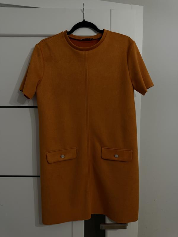 Новое платье, размер м, на л также красиво сядет. Один раз одета. Красивый оранжевый цвет, ложные обманки.