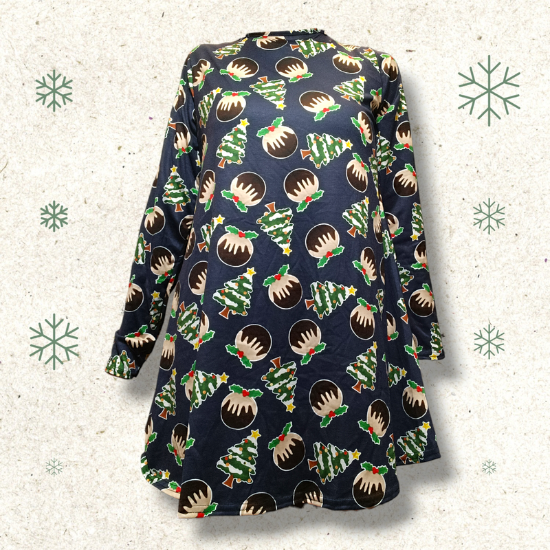 Новогоднее рождественское платье платье с принтом елки и кексы