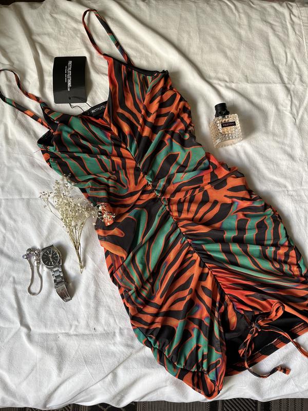 Новое платье-мини на тонких бретелях в принт от pretty little thing