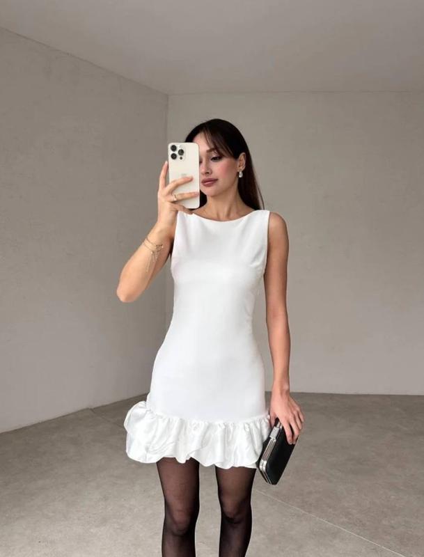 Модель 802 Женское трендовое платье Размерный ряд S,M,L,XL Тренд этого сезона Воланы Ткань основа костюмный креп, воланы качественный плотный двойной шелк Застегивается на потайную молнию Цвета черный, белый и красный Супер качество Цена 750 грн.катр
