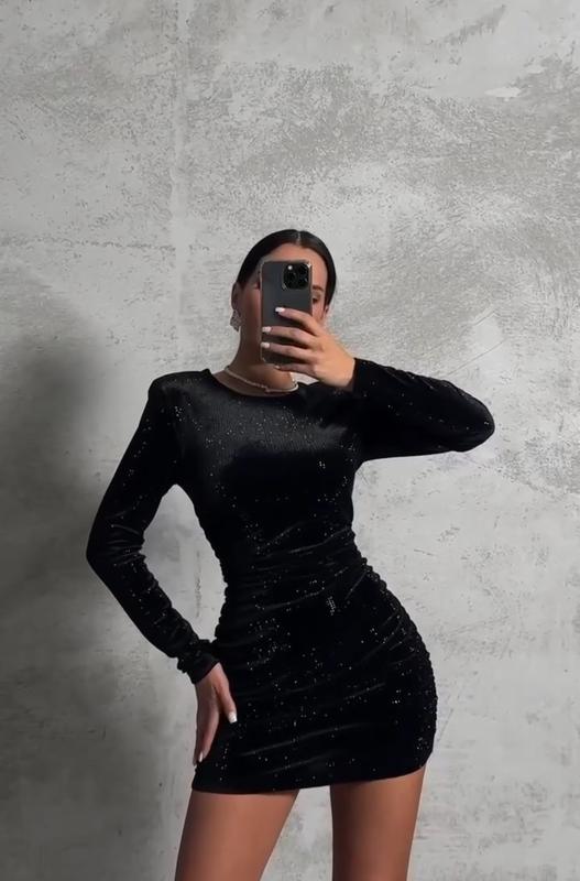 Невероятное платье с блестками, по бокам сборка. Это именно то маленькое черное платье которое ты искала 🤗 Размер: 42-44, 46-48 Ткань: бархат блестки Цвета: черный Качество отличное 🔥 (Есть видео)