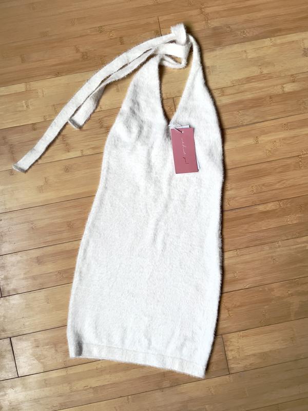 Стильная, вкусная мини-платье молочного цвета, острое тянется (хорошо тянется) пухнаста, очень приятная, отменного качества и кроя.Замеры смотрите на фото.Бренд-Without You.
