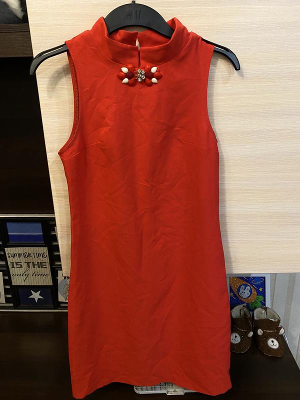 Очень эффектное платье красного цвета! Стильная и яркая. Размер С. Стан идеален, есть малозаметный дефект, потерялись 2 камушки (видно на последнем фото). В остальном супер, почти не носилась. Качество отличное!