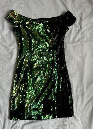 Розмір S -M Трендове міні плаття хамелеон з паєток чорне-кольорове Довжина по спині 75см Півширина під пахвами 42см (добре тягнеться) Має блискавку збоку в ідеальному стані одягалися 2 рази ідеально для корпоративу чи святкування нового року