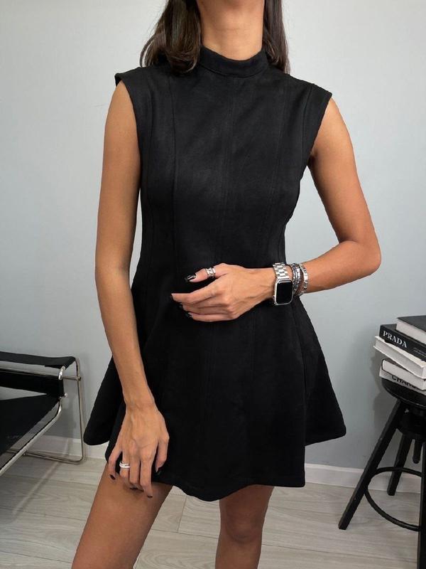 Лаконичное замшевое платье мини без рукавов нарядное платье