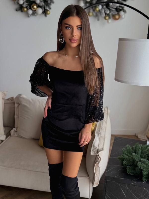 🔤🔤🌸 🔤🔤🔤🔤🪷 Новогодняя реальная фотосессия 👍 # 503 ▪️Цвет: Черный ▪️Тканина: Велюр оксамит + Сітка ▪Размер: 42-44,46-48 ▪️Цена 1100 грн 🔥 👑Встретень Новый Год в новом крутящем платье 👍 Ткань велюр бархат приятная к телу и хорошо тянется, 📸Силуэтное платье подчеркивает фигуру, рукава фонарики добавляют привлекательности ❤️