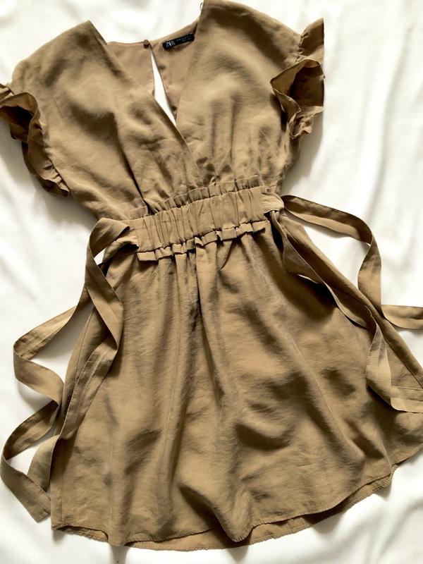 Короткое платье из лиоцелла на подкладке, в идеальном состоянии, без дефектов. Длина 83 см, Ног. 45 см, Нот. + - 30 см ( в талии резинка и пояс), Нос. 54 см.