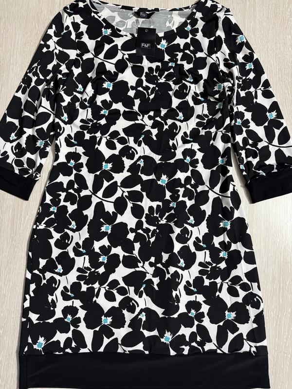 В наличии красивое платье фирмы F&F. Размер указан 8. Состав: 87% полиестер и 13% эластана. Ткань эластичная и хорошо тянется. ПОГ-42..тянется до 47, длина платья-84, полуобъём талии-37, ПОБ-46, плечи-37, длина рукава-42.