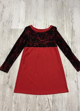 Красное платье трапеция с кружевом Размер S Состояние красивое (трошки кашлатость сбоку на фото добавлено)