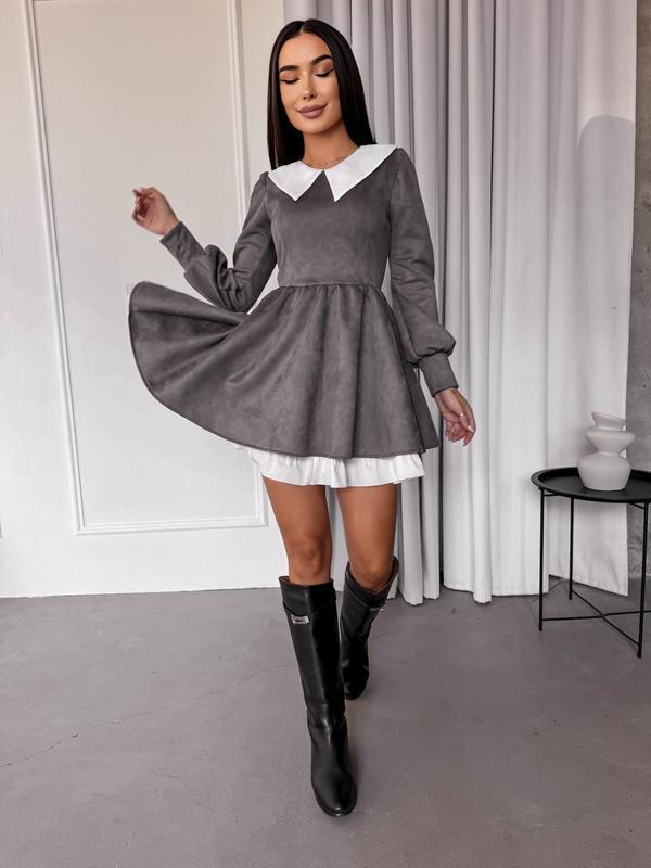 В наличии платье: с съемным белым воротником, застегивается молнией на спинке, + съемная белая юбка, • Ткань: замш на дайвинге с добавленным белого коттона Производство: Турция Цвет: бежевый, графит Размер: с-м(42-44) Об.. гр. 84-90 см. Об.талии 62-68 см. Длина 83 см. Размер: м-л(46-48) Об. гр. до 90-96 см. Об.талию до 68-72 см. Длина 84 см.
