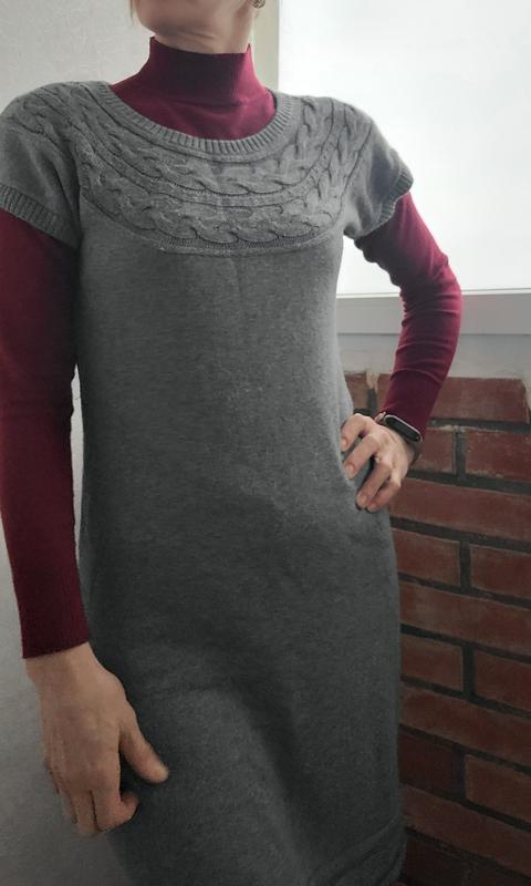 Продам платье серого цвета, вязанное, рукав короткий, фасон трапеция , фирма H&M, в отличном состоянии. Состав: 56% коттон 38% полиамид 6% альпака Длина изделия 95 см Окружность груди 82-84 см(тянется)
