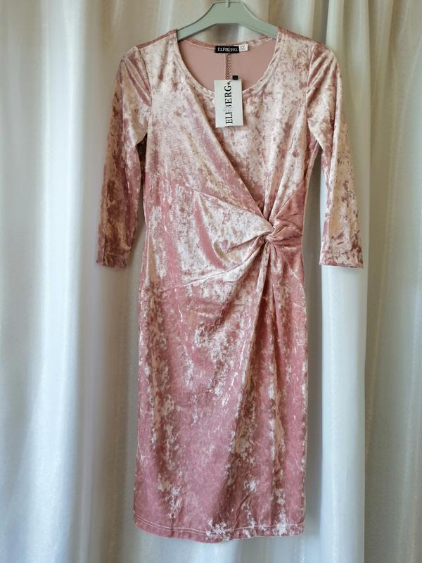 Плаття велюр оксамит стрейч з акцентним переплітом на талії , рукав три чверті , розмір...