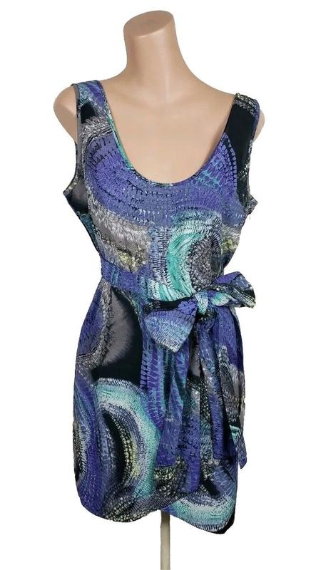 Платье женское от бренда ASOS, размер M. Внешняя ткань - 100% полиэстер, подкладка - 100% вискоза. Плечи- 36 см, ПОГ- 45 см, ПОТ- 35 см, регулирует поясом- связкой, ПОБ- 50см, длина платья- 85см.