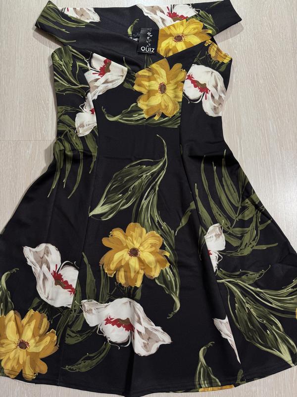 В наличии красивое платье фирмы QUIZ. Размер указан 14, но явно маломерит и по замерам больше идёт на 10/12. Состав: 95% полиестер и 5% эластана..ткань очень мягенькая и приятная к телу, хорошо тянется. ПОГ-45..тянется до 51, длина платья-88, полуобъём в талии-39+ещё тянется, в бёдрах-свободно..пошито трапецией.