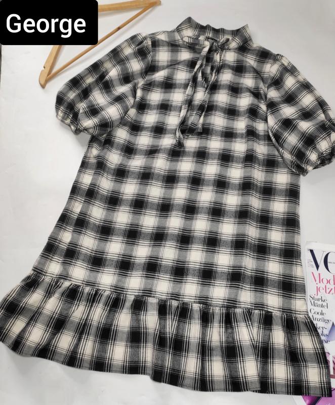 Платье женское мини в клетку серого цвета с оборками от бренда george l
