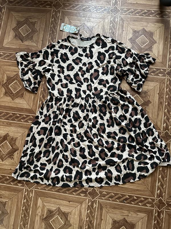s m boohoo платье платья платье леопардовое леопардовое babydoll свободного кроя мини мины Новое, с биркой По наборке размер 10, крой свободный, подойдет и на беременных