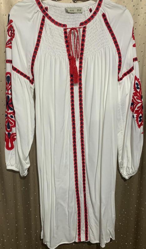 Платье - прямого кроя- вышивка- турция- один размер- м - на 38 гг - хлопок
