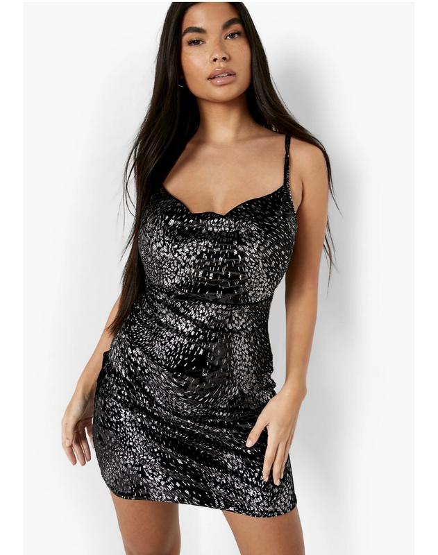 Платье мини из стрейч велюра, с серебристыми капельами,декотельный водопад. Очень яркая🔥🔥, подойдет к любимому празднику🎉 ОГ 104 см ОТ 86 см ОС 104 см Длина 78 см