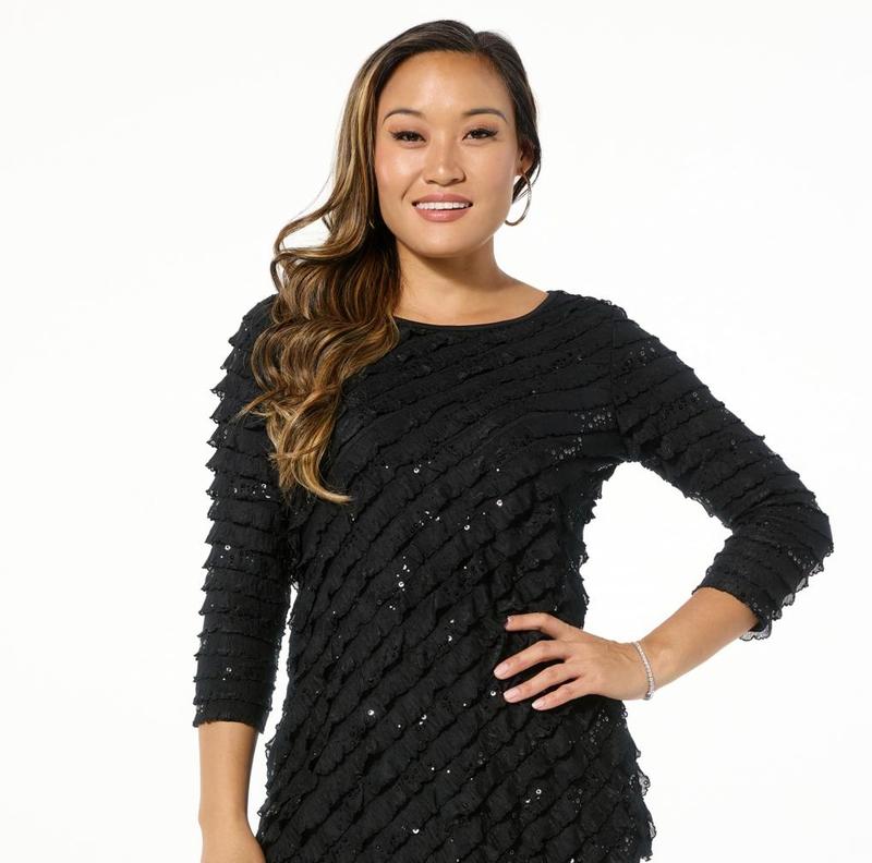 Черное платье с рюшками в пайетках