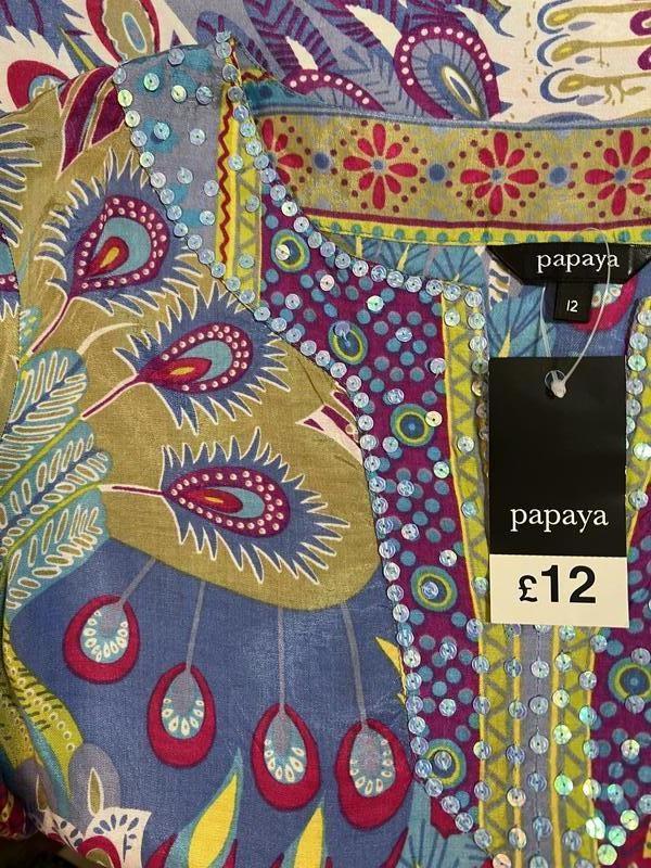 В наличии красивое платье-туника фирмы PAPAYA. Размер указан 12, но немного маломерит и по замерам больше идёт на 10. Состав: 100% вискоза...ткань мягенькая и приятная к телу, не тянется, не жаркая. ПОГ-49, длина платья-83, полуобъём в талии-45, плечи-40, длина рукава-45, полуобъём в бёдрах-50.