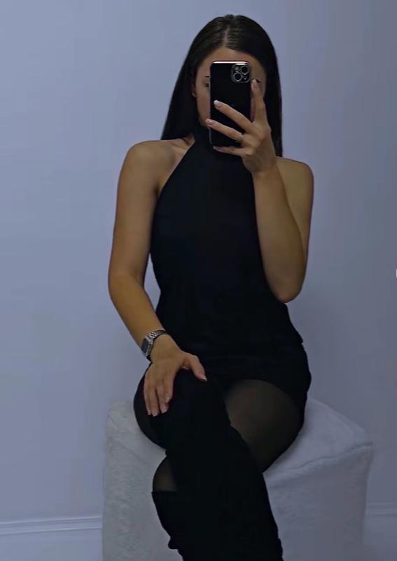 шикарна шовкова вечірня сукня чорного кольору, з горловиною типу чокер розмір С нова, шили під замовлення продаю значно!!! дешевше