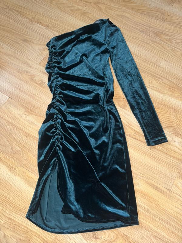 Невероятное платье в изумрудном цвете. С рукавом на одну сторону