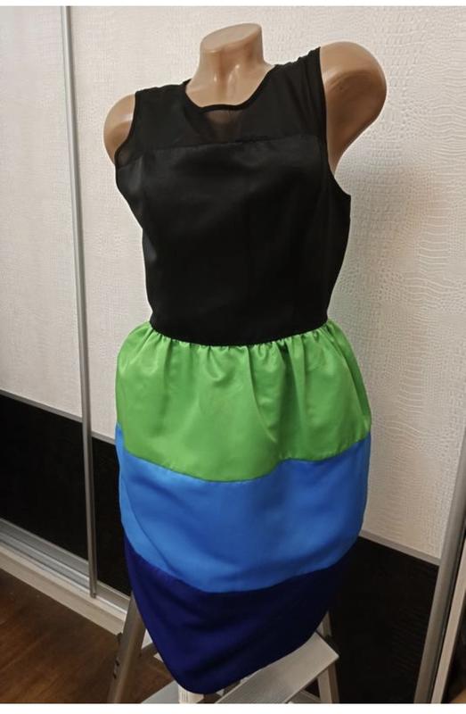 Нарядное платье TOPSHOP. UK 12,на 44-46 Ближе к 44р. Платье имеет форму бочонка. Нижняя часть платья из плотной ткани, держит форму.Плечи из прозрачной ткани. На спине молния. Есть подкладка по всему платью. По линии талии с изнанки полоса сетки для пышности. Длина от плеча 95см Ширина между подмышками 45см По линии талии 38см От плеча до линии талии 41,5см Поб 54см максимум. Ткань не тянется.