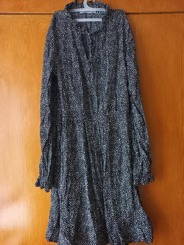 Платье черного цвета в мелкий белый горох S 44 размер,ткань приятная к телу состав 50/50 вискоза и полиэстер. Одетая 2 раза. Замеры скина кому нужно, где-то на объем груди до 90см