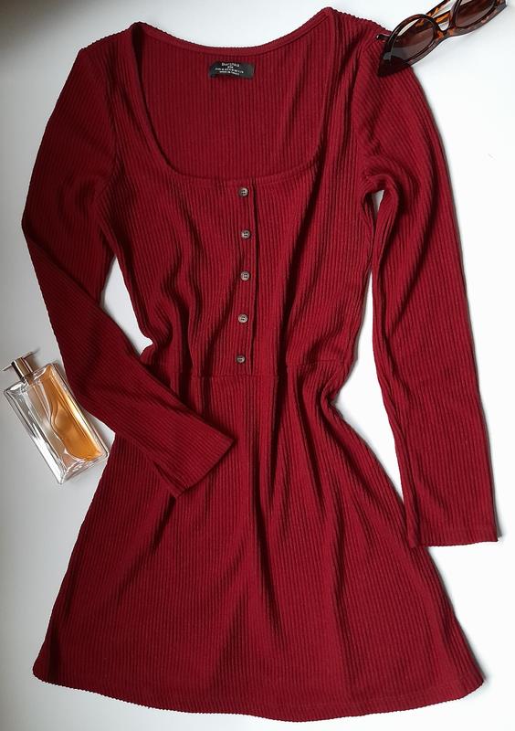 Сукня Bershka глибокого бордового кольору, міні, в рубчик, розмір М. Тканина м'яка і дуже приємна до тіла