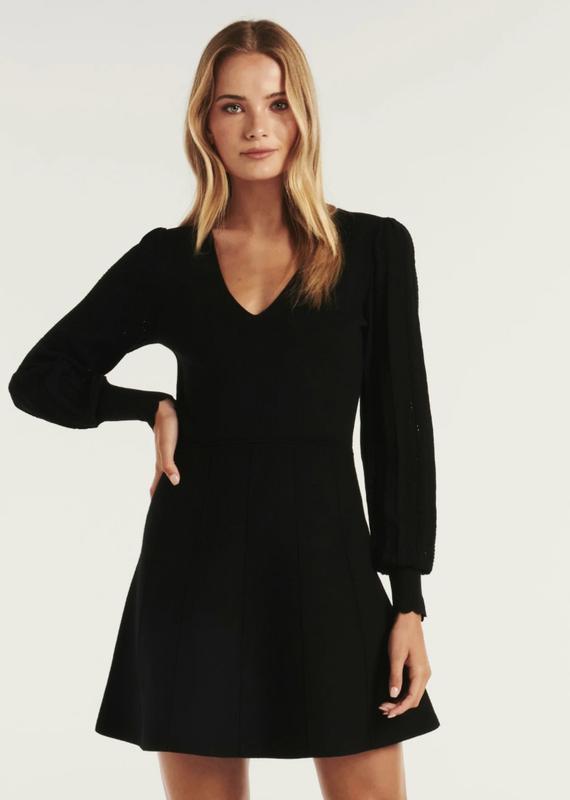 Плаття трикотажне 70% віскози сезон: весна/осінь Розмір вказаний EU 40/42 довжина 79 довжина від плеча до талії 35 плечі 40 рукав 60 ПОГ 45 ПОТ 38 ПОБ 47 Колір насичений чорний, без дефектів