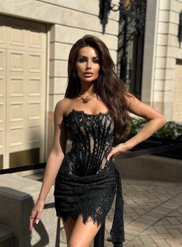 Платье кружевное черное красное