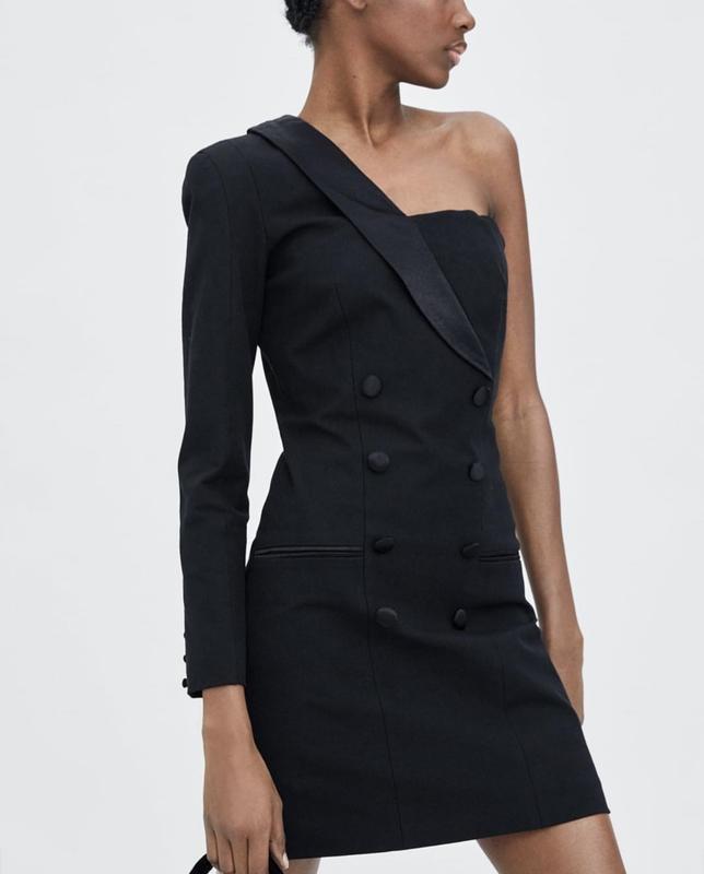 Элегантное платье на одно плечо бренда Zara Стан идеален, как новая Размер: S Длина платья - 83, обхг - 38, обхт - 34, обхб - 44, длина рукава - 60