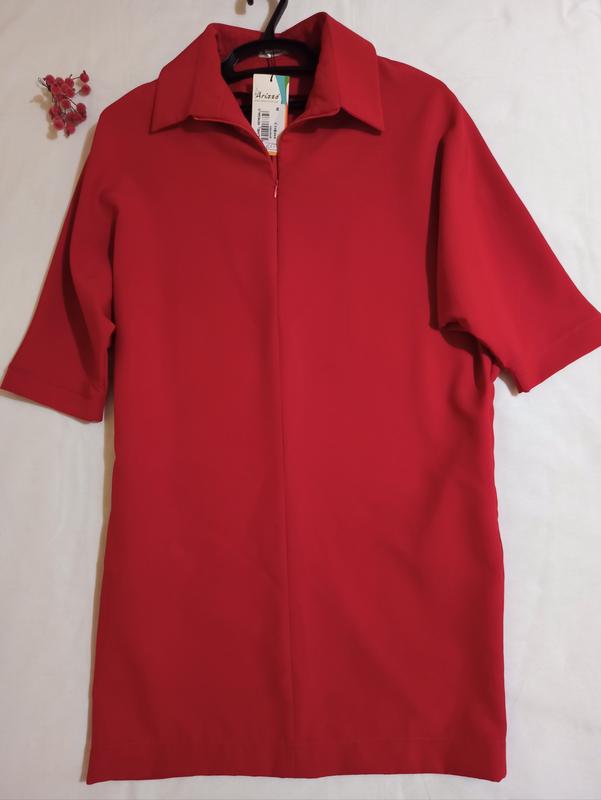 Стильное платье -рубашка, красного цвета с прорезными карманами