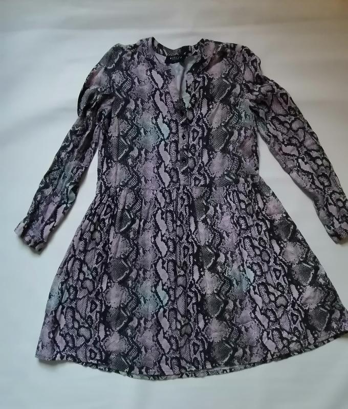 Брендовое платье сo змеиным принтом. Очень комфортное и практичное. Выглядит очень стильно. Красиво смотрится в образах. Размер S M Замеры ПОГ 45 см Длина изделия 83 см Длина рукава 56 см